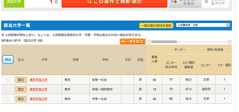 ちなみに、河合塾のケイネットを使い、調べた所、