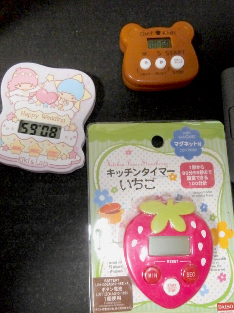 ちょっと接触が悪くなってきたので、ダイソーのキッチンタイマー、いちご❤(ӦvӦ。)