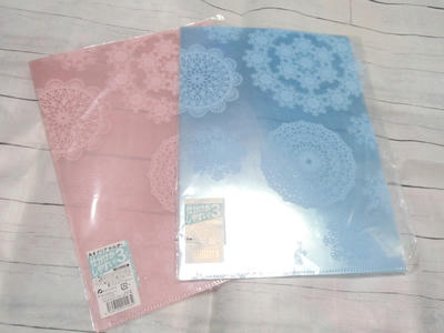 上品なレース柄がきれいなクリアファイルで、インデックス付きなんですよ。