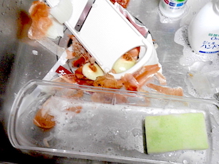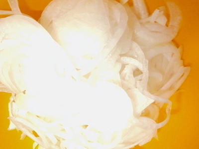 ★玉ねぎをスライサーに。これからカレー作りやす。シリコン容器に放ったとこ。