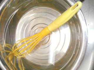 泡立て器でよく撹拌(かき混ぜること)をします。濃いめの濃度で作ります。
