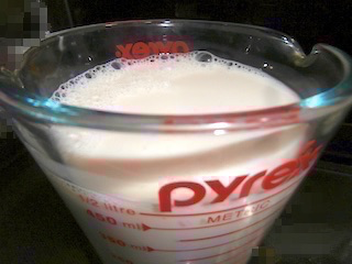 パイレックスの容器にうつして加熱なんだけど、プロテインシェイカーを使って、
