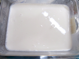 シェイクするのね、あの、ゼラチンと。で、よくシェイクしてから加熱したんだけど、
