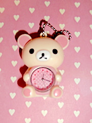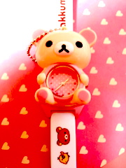 コリラックマちゃん時計(なんちゃってセブンティーンみたいな洋服を扱っている店で980円でゲットしたの♬)が、止まってしまっている(背景の折り紙はセリアでゲットしたやつだよ♪)