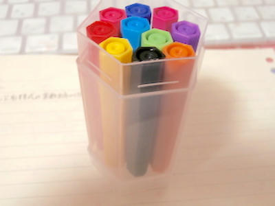 うーんと、カラーマーカーを100円でゲットしたのだけれど、微妙に太線にしたいときとか、囲いたいときに、使うっていうか。