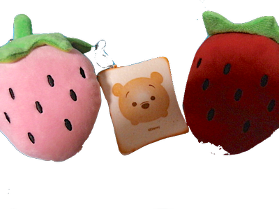 熊のプーさんのスクイージーとイチゴのキーチェーンを発見。