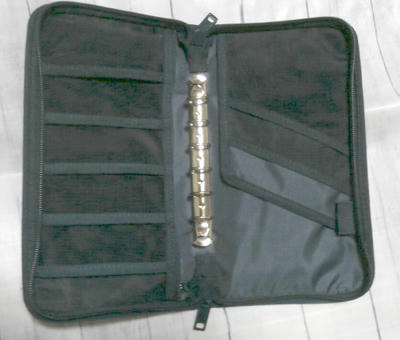 開けるとこんな感じのシステム手帳なのですが、中古ショップで100円で見つけて、