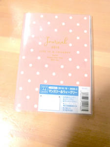 ちょいとケイトスペードみたいなカラーの表紙の手帳は108円。